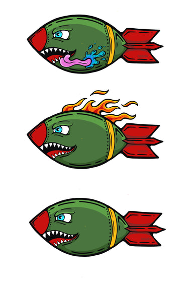 Inspired by a small bomb tattoo I did on myself years ago! I love the look of the WW2 Flying Tigers P-40 nose designs with the angry teeth! All my...